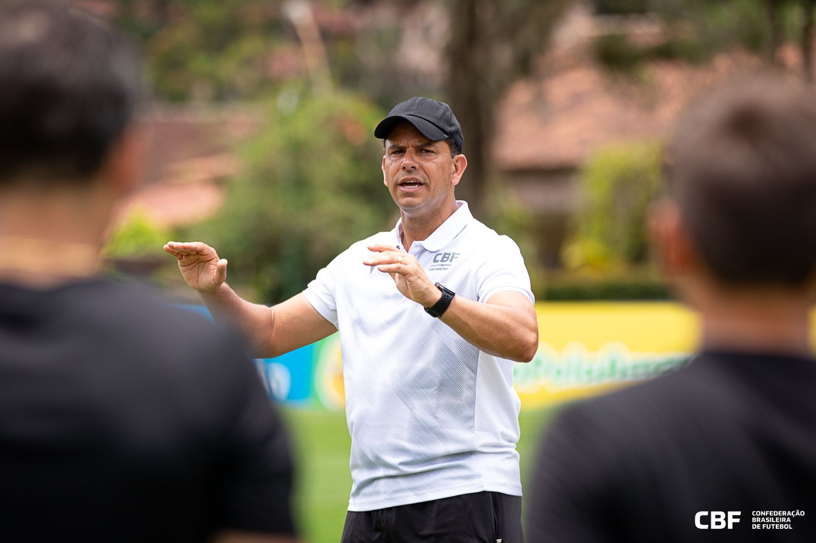 Emerson Filippino (de verde), cientista do esporte da Comissão de Arbitragem, é o responsável pela programação físicaCréditos: Rafael Ribeiro / CBF