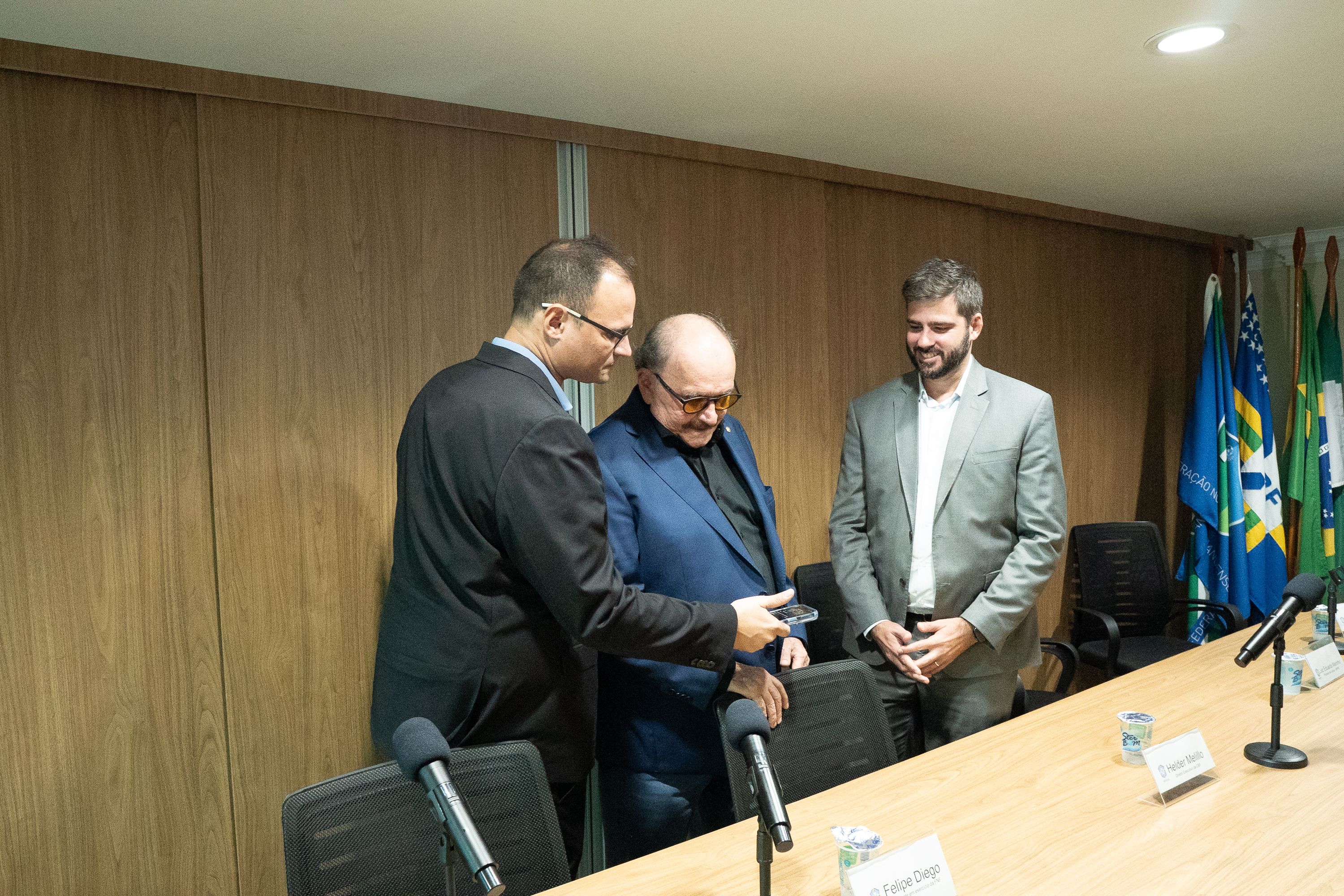 Felipe Silva, José Vanildo e Helder Melillo durante agenda institucional da CBF na sede da Federação Norte-rio-grandense de FutebolCréditos: Divulgação FNF
