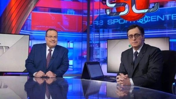 Paulo Soares e Antero Greco apresentavam o SportsCenter, da ESPN, com leveza e bom humorCréditos: Divulgação ESPN