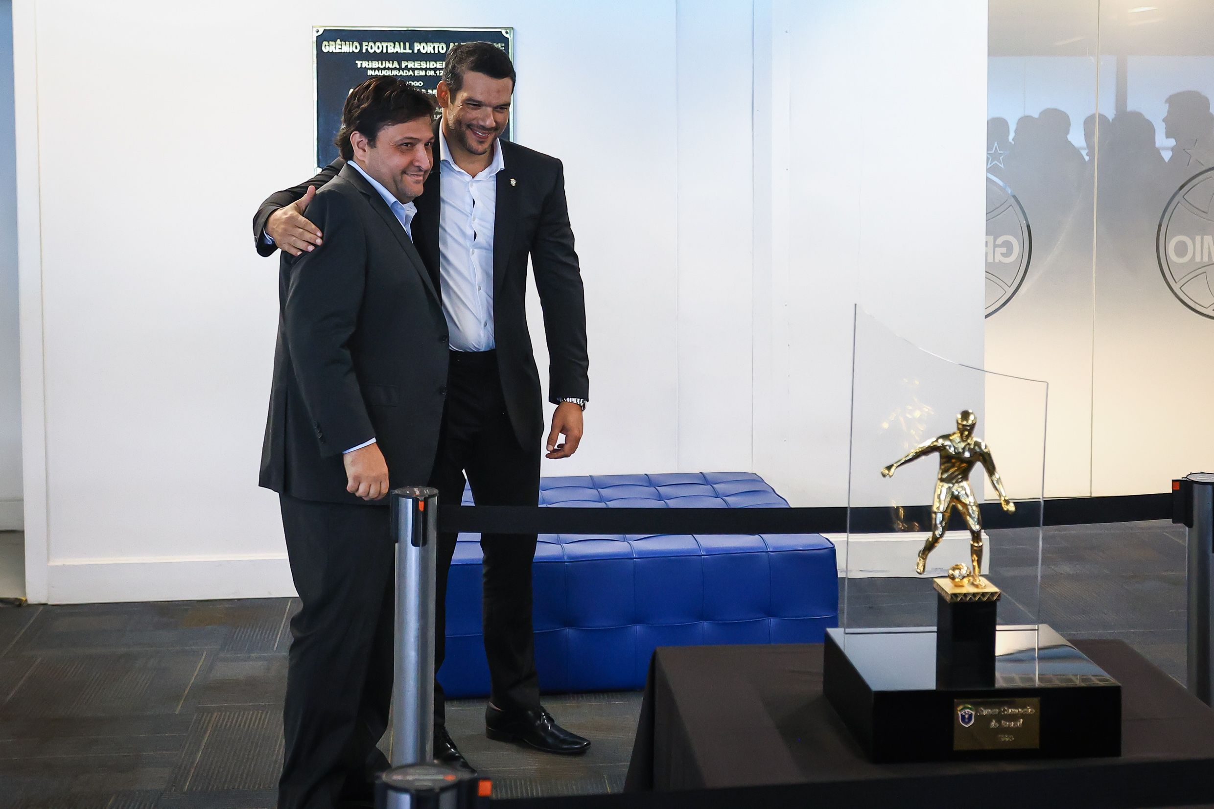 Alberto Guerra, presidente do Grêmio, agradece Samir Xaud, presidente da CBF, pelo reconhecimentoCréditos: Lucas Uebel/Grêmio