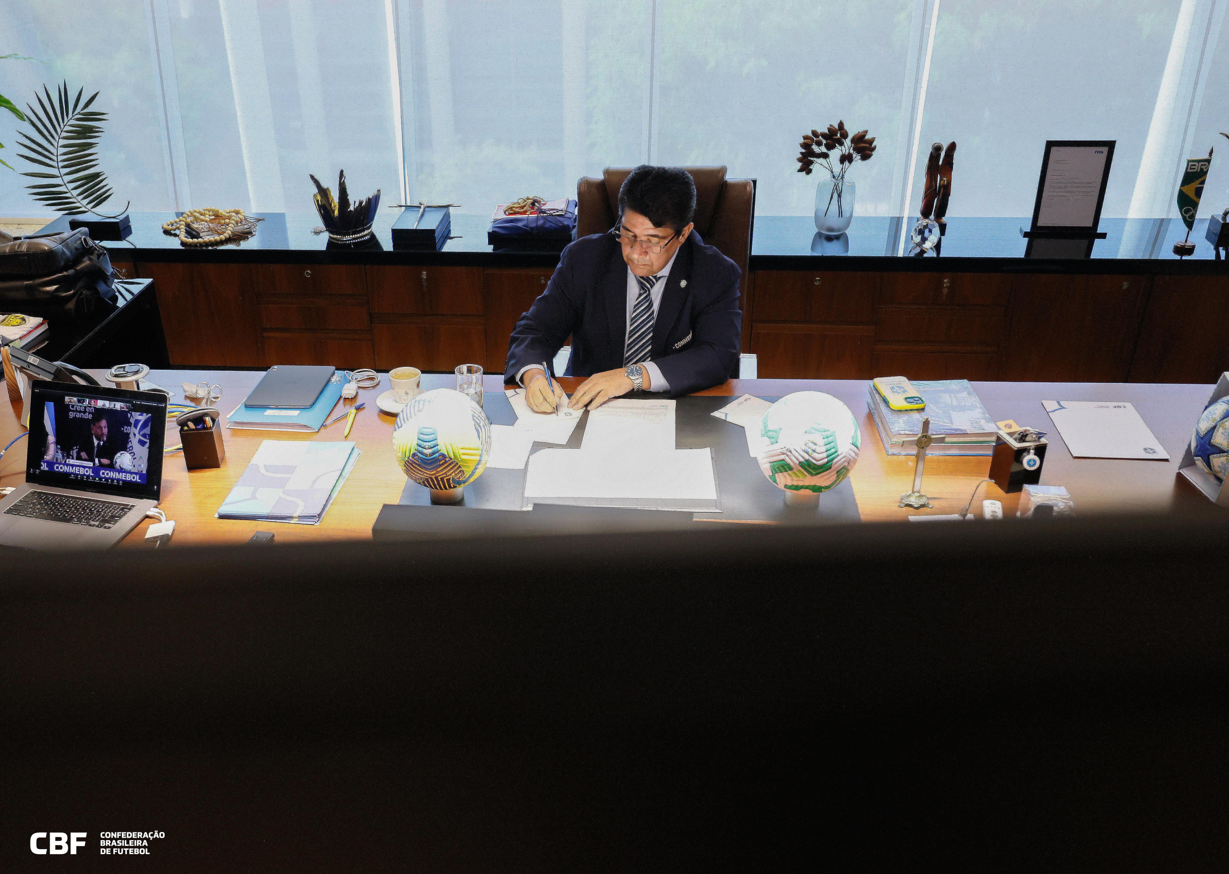 Presidente da CBF, Ednaldo Rodrigues, cobrou punições duras para casos de racismo em reunião da ConmebolCréditos: Rafael Ribeiro/CBF
