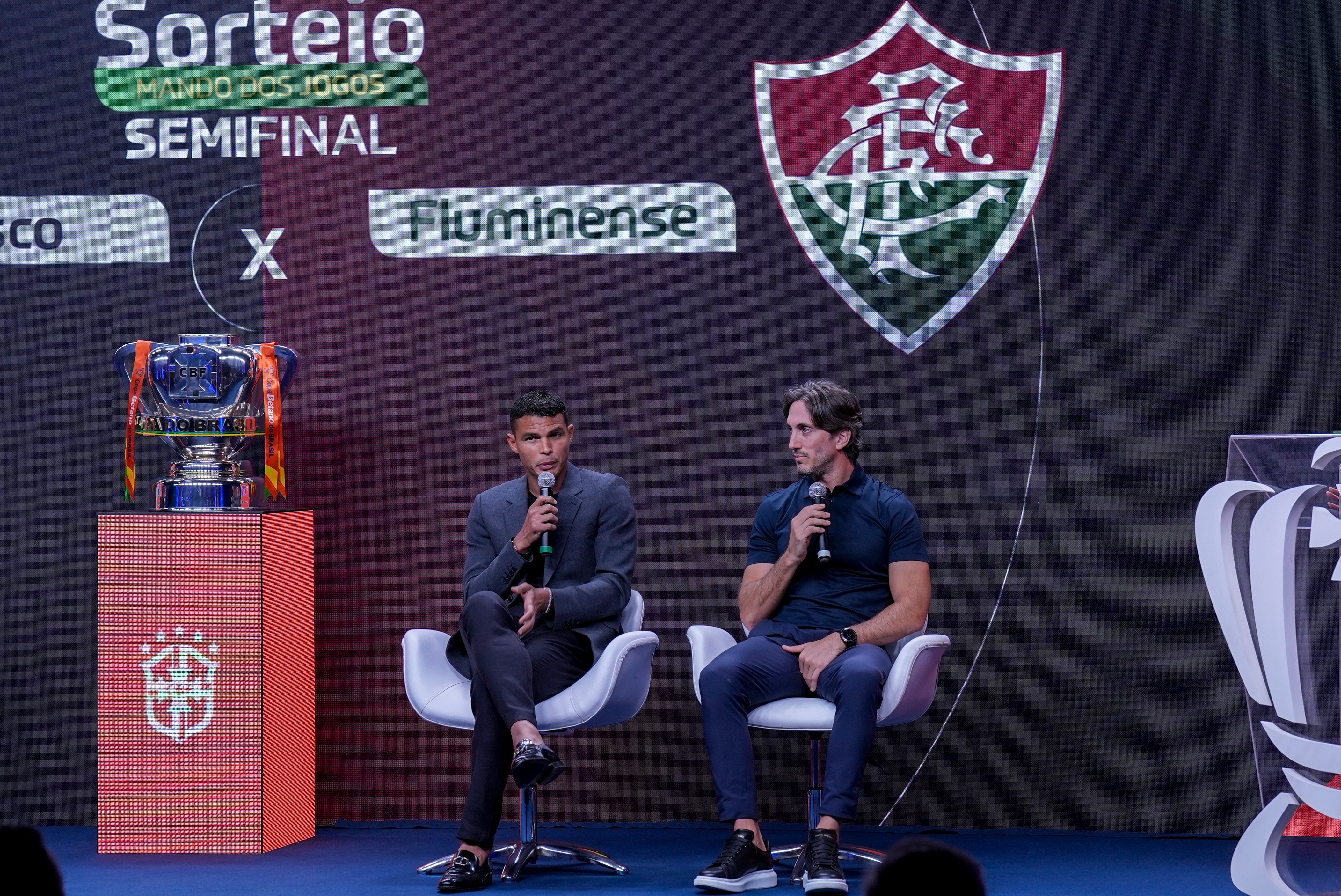 O sorteio dos mandos de campo das semifinais e final da Copa Betano do Brasil 2025 aconteceu nesta quarta-feira (22), quando foi definido que Cruzeiro e Fluminense serão os mandantes dos jogos de ida contra Corinthians e Vasco respectivamente. O evento contou com algumas presenças especiais, como as dos técnicos e capitães de cada semifinalista.