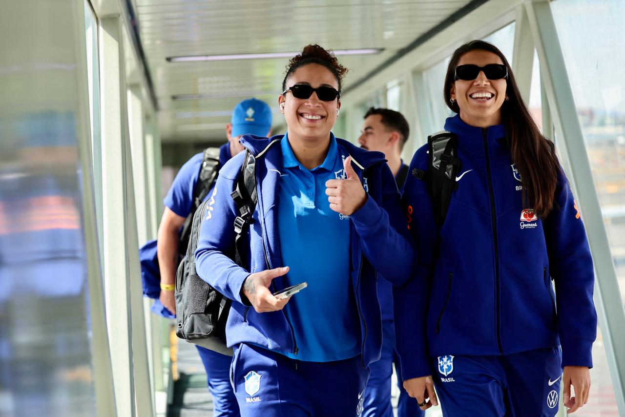 Lelê e Bia Zaneratto durante embarqueCréditos: Lívia Villas Boas/Staff Images/CBF