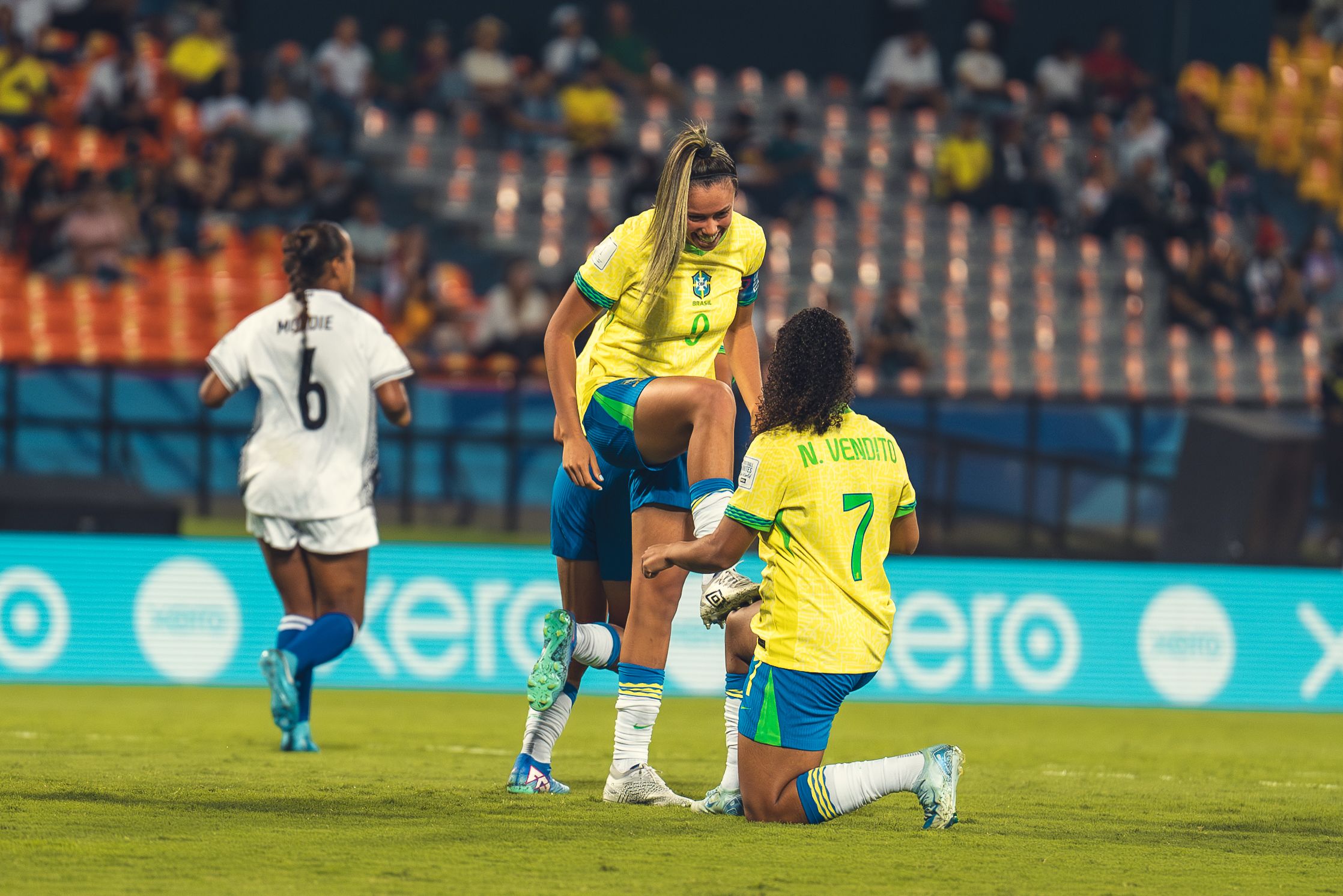 Vitória Amaral e Natália Vendito fizeram dois gols, cada. Completaram o placar Lara Dantas, Priscila, Milena, Fernanda e Gisele. A goleada na Colômbia iguala o melhor resultado do Brasil na história da competição. Em 2016, o Brasil derrotou Papua Nova Guiné pelo mesmo placar.