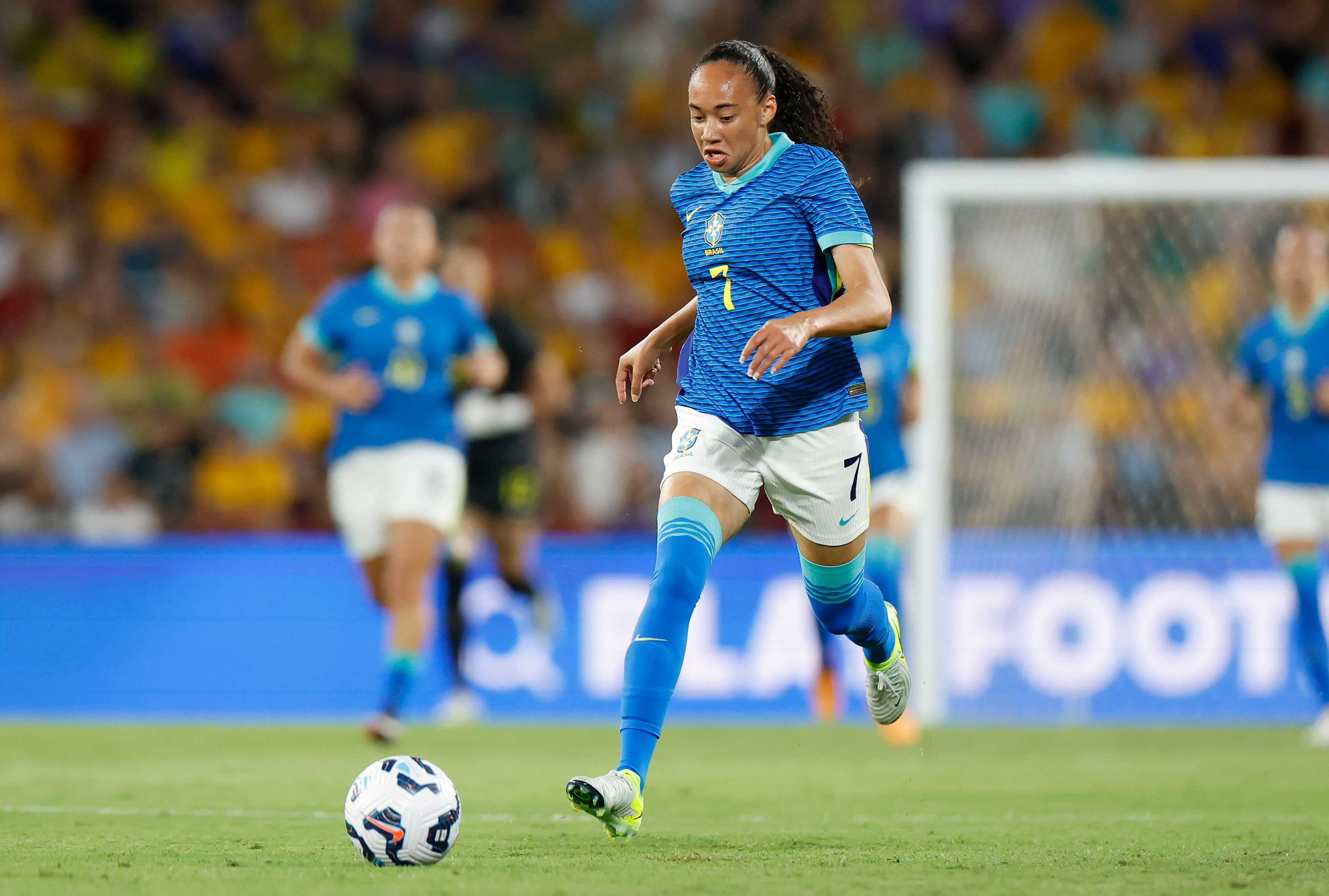 Eu estava falando com a Portilho antes, no comecinho, quando a gente já estava no campo para entrar e eu estava sentindo um pouco estranha. Eu falei “nossa, acho que eu estou um pouquinho nervosa ainda”. Aí ela falou para mim, “não, vai leve, joga seu futebol, se você errar, a gente vai estar ali correndo para você, todo mundo junto”. E isso me confortou muito. Então pensei “eu acho que é isso então, vou jogar futebol”. E foi exatamente isso, deu tudo certo ali, consegui ir bem na partida. Todo mundo falou comigo depois que eu fui bem, fiquei muito feliz com isso. E eu estava ali mesmo para ajudar o Brasil, para ser melhor e a gente conseguir sair com vitória.