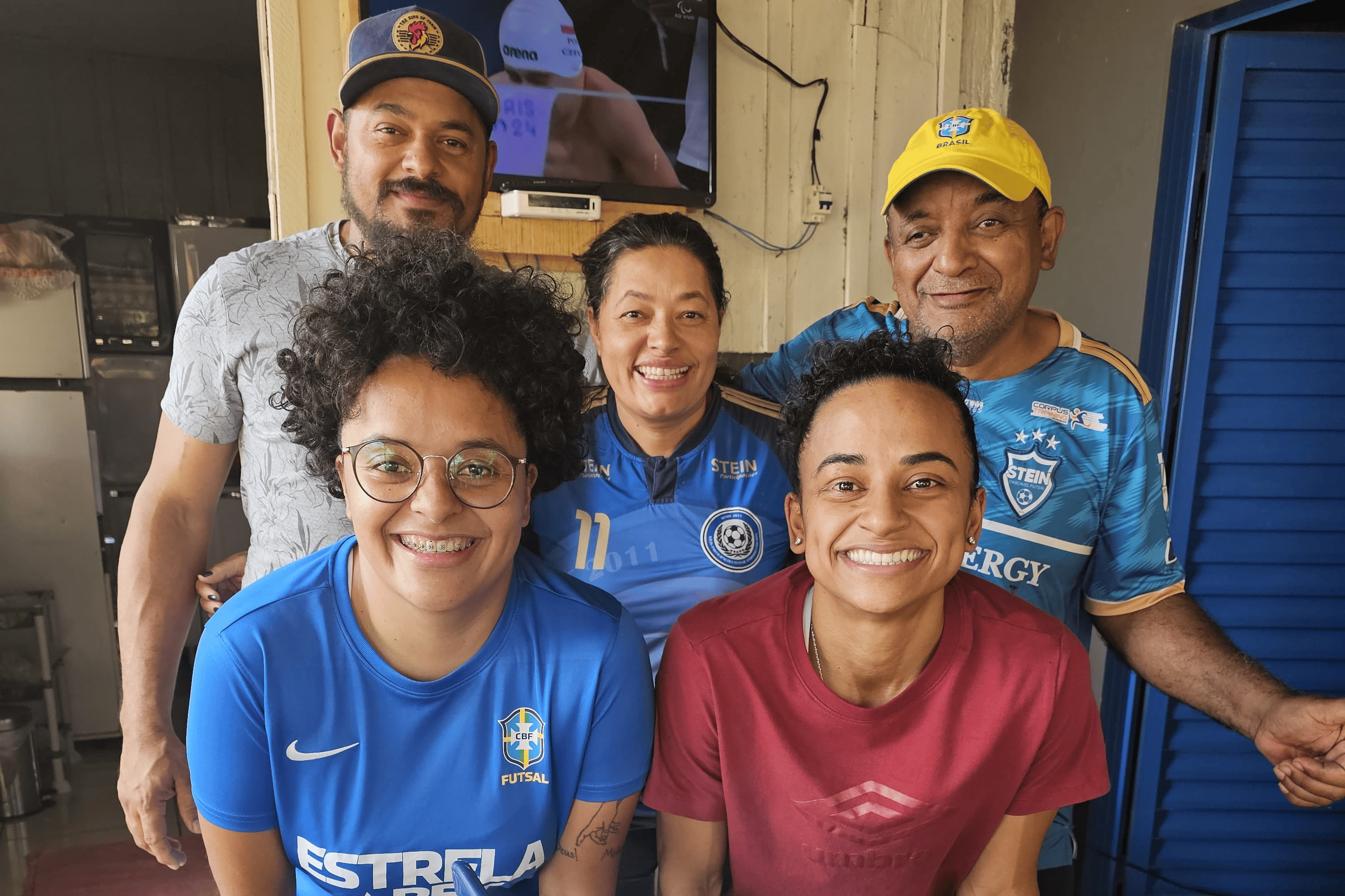 Meus pais sempre me apoiaram muito. Em 2004, nos mudamos para Carapó, no Mato Grosso do Sul, e ali existia o futsal feminino, com torneios e competições, principalmente em Laguna. Eu, minha irmã e meu irmão começamos a jogar, e mesmo pequena, com 12, 13, 14 anos, eu já jogava no adulto. Em 2009, pelo Orkut, uma pessoa de Pindamonhangaba chamou para um teste. Fui com minha irmã. Em casa nunca passamos necessidade, mas vivíamos com o básico. A única coisa que eu podia escolher era o tênis de futsal. Meus pais nos deram o cartão do banco e disseram para irmos, que se não fosse o que imaginávamos, poderíamos voltar. Eles sempre confiaram muito em nós. Minha irmã não ficou nem uma semana, a realidade era bem difícil: a casa, a alimentação… Ela pediu para ir embora. Eu fiquei três, quatro meses e também voltei. Minha primeira saída de casa tinha sido muito difícil. Eu jogava por gostar, sem compromisso coletivo, e tudo era novidade: treino físico, bola parada, marcar… Fiquei frustrada e não soube lidar, então voltei. No mesmo ano fui para Araçatuba. Mas em 2010, já com alguma vivência, tive a Silvana Kuka como treinadora em Araçatuba, e aquilo foi uma virada de chave. Fiquei 2010 e 2011 lá. Em 2012 voltei para Pindamonhangaba, meu último ano de sub-20. Aquele ano marcou outra virada: com um salário melhor, decidi que não pediria mais dinheiro aos meus pais. Queria me virar, viver minha vida.