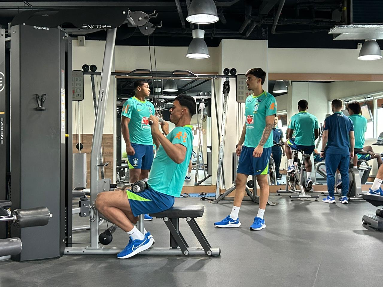 Menos de 24 horas depois do desembarque em Doha, no Catar (saiba mais aqui), a Seleção Brasileira Sub-17 já começou a suar. Em dia de treinamento integral, a equipe fez na manhã desta quinta-feira (30) um treino na academia comandado pelo preparador físico Igor Cotrim.