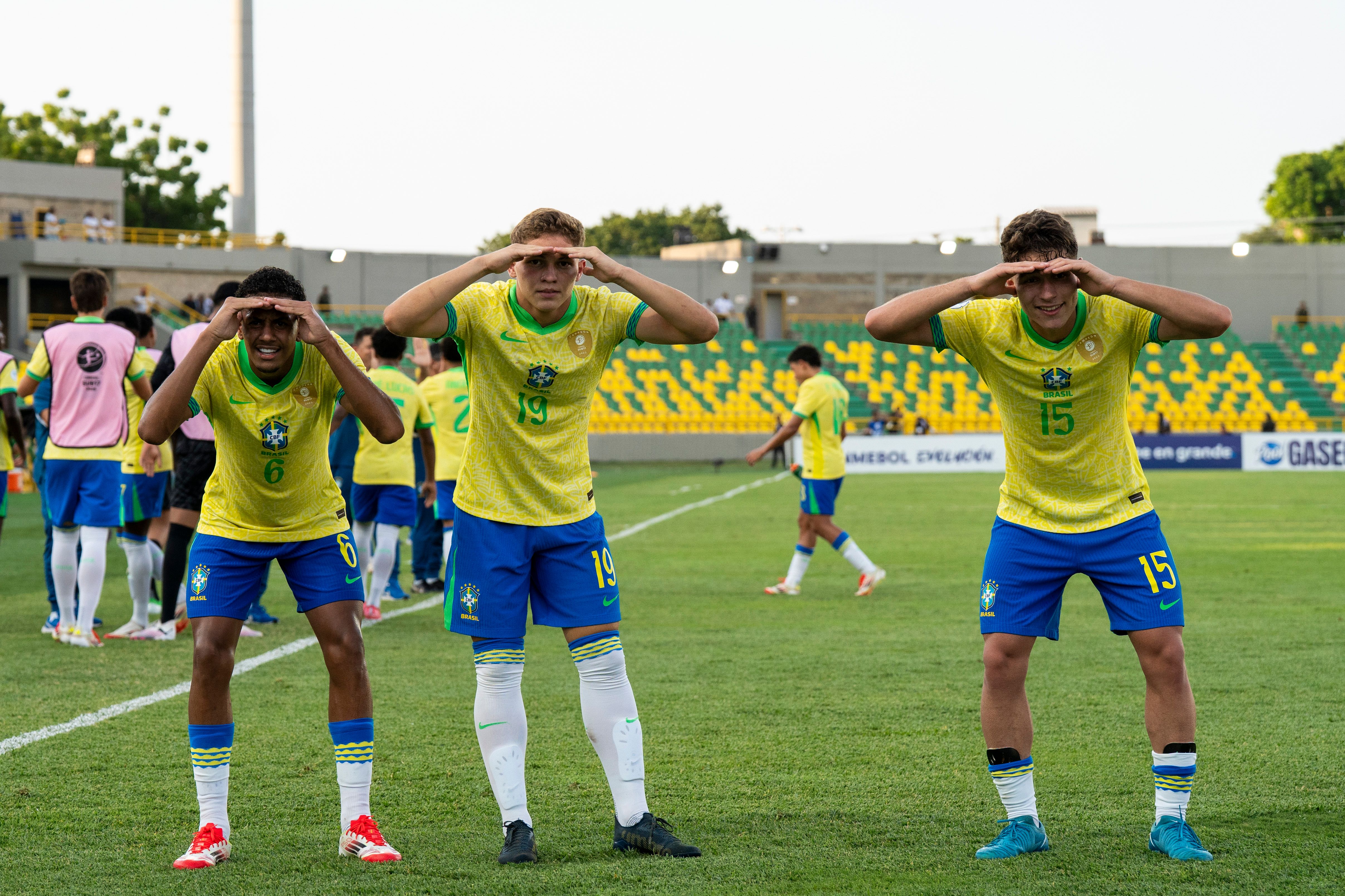 Alegria dos meninos do Brasil com a vaga na final do Sul-AmericanoCréditos: Nelson Terme / CBF