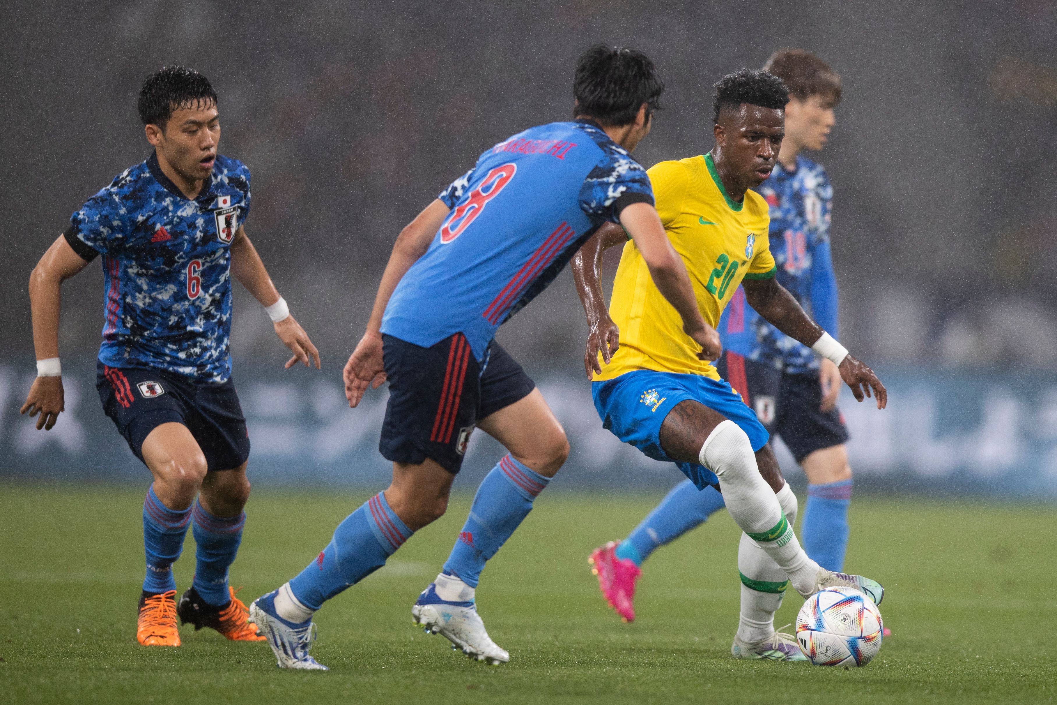 Vinicius Jr. em ação durante o último jogo entre Brasil e Japão, em junho de 2022Créditos: Lucas Figueiredo / CBF