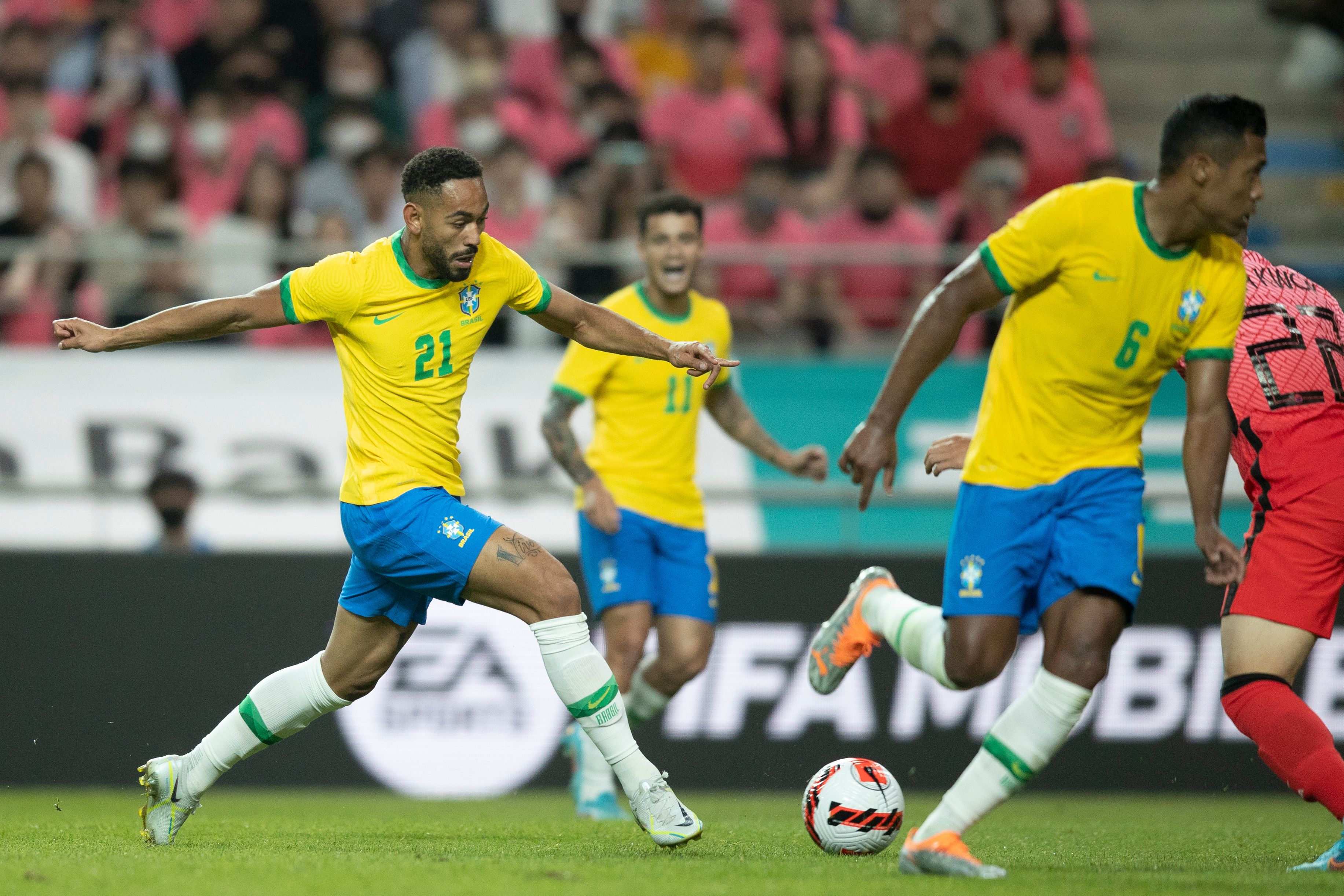 O jogador de 26 anos fez parte do grupo que enfrentou Coreia do Sul e Japão em junho de 2022. À época, o Brasil estava na reta final de preparação para o Mundial daquele ano, e Matheus entrou nos minutos finais da goleada por 5 a 1 sobre os sul-coreanos, também no Estádio da Copa do Mundo de Seul, palco do jogo desta sexta-feira (10).
