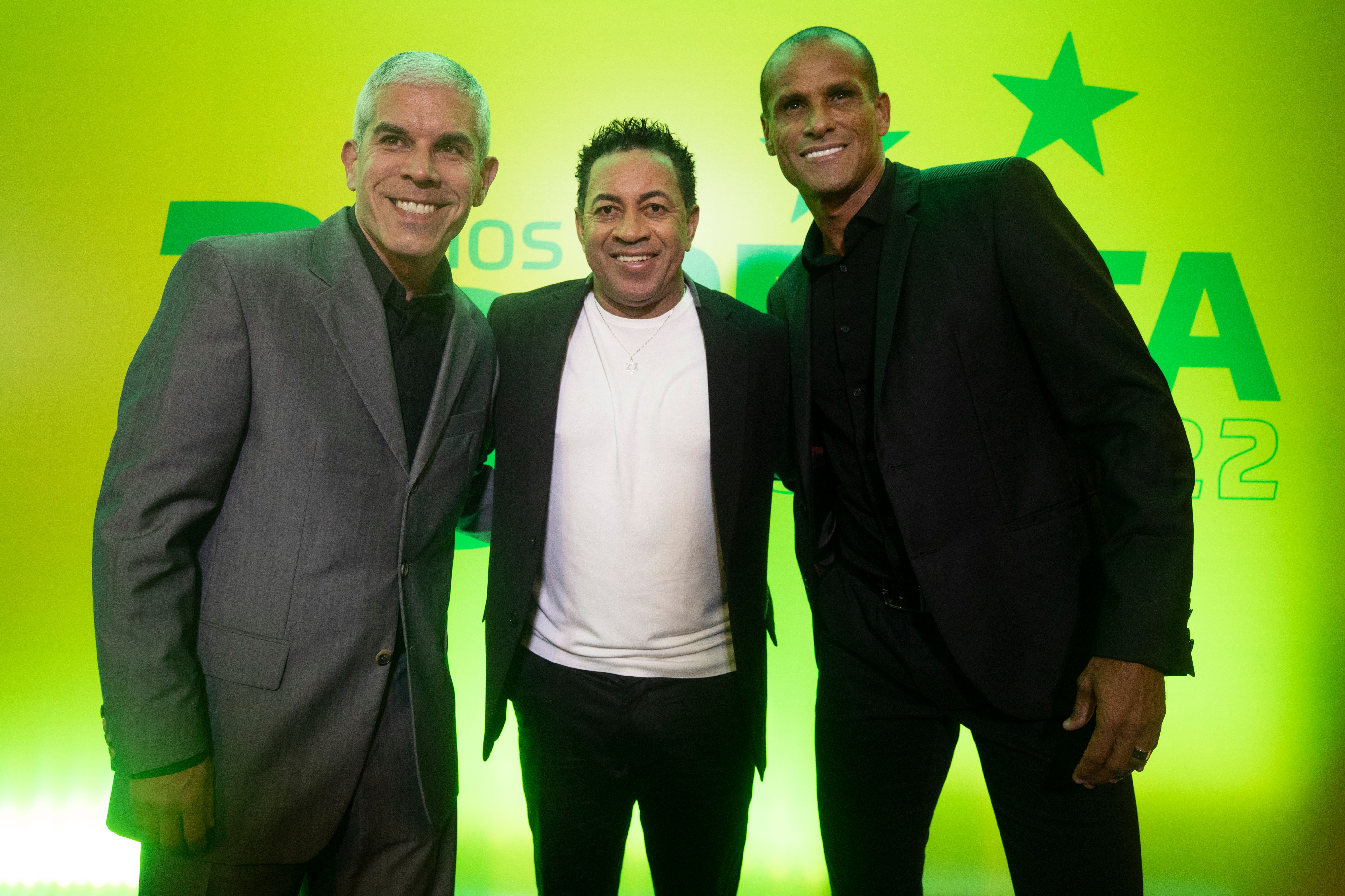 Ricardinho, Junior e Rivaldo na festa de 20 anos do Penta Créditos: Lucas Figueiredo/CBF
