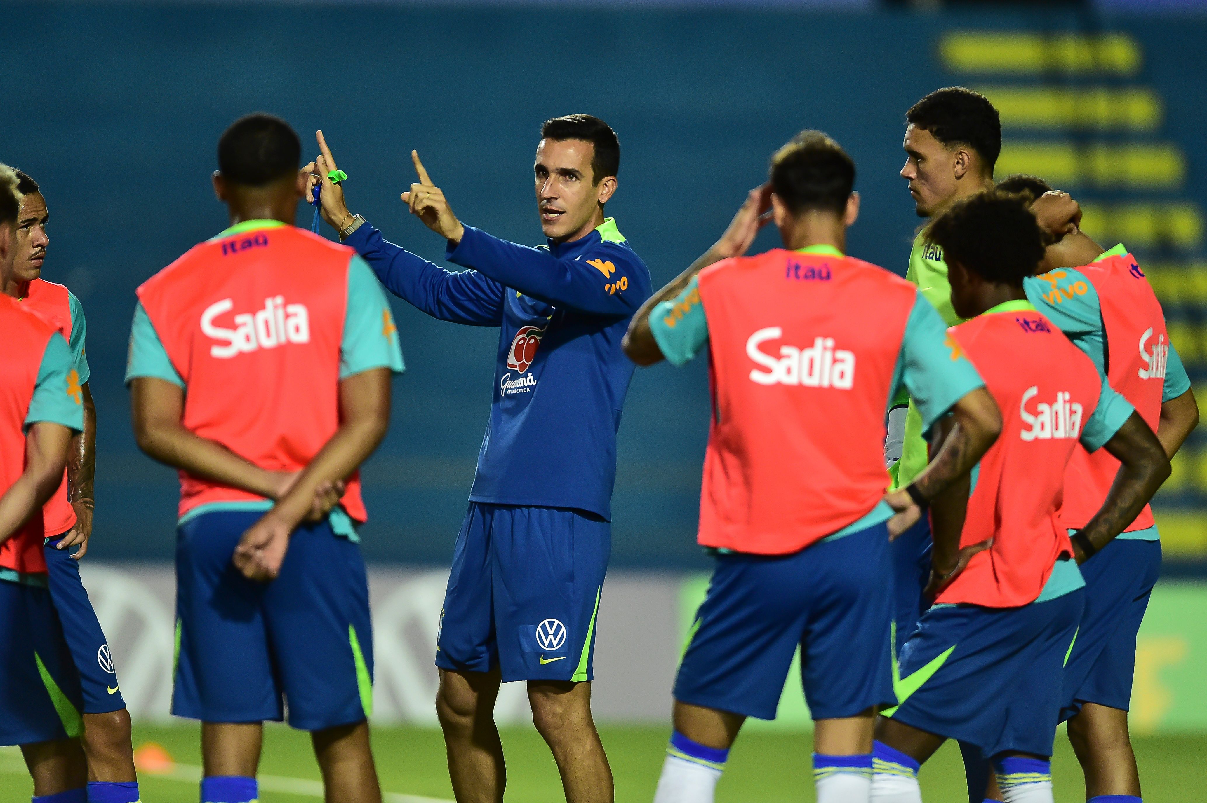 Paulo Victor e o auxiliar Lucas Andrade: amistosos contra o Paraguai já iniciam preparação para as grandes competições, em 2027Créditos: Staff Images / CBF
