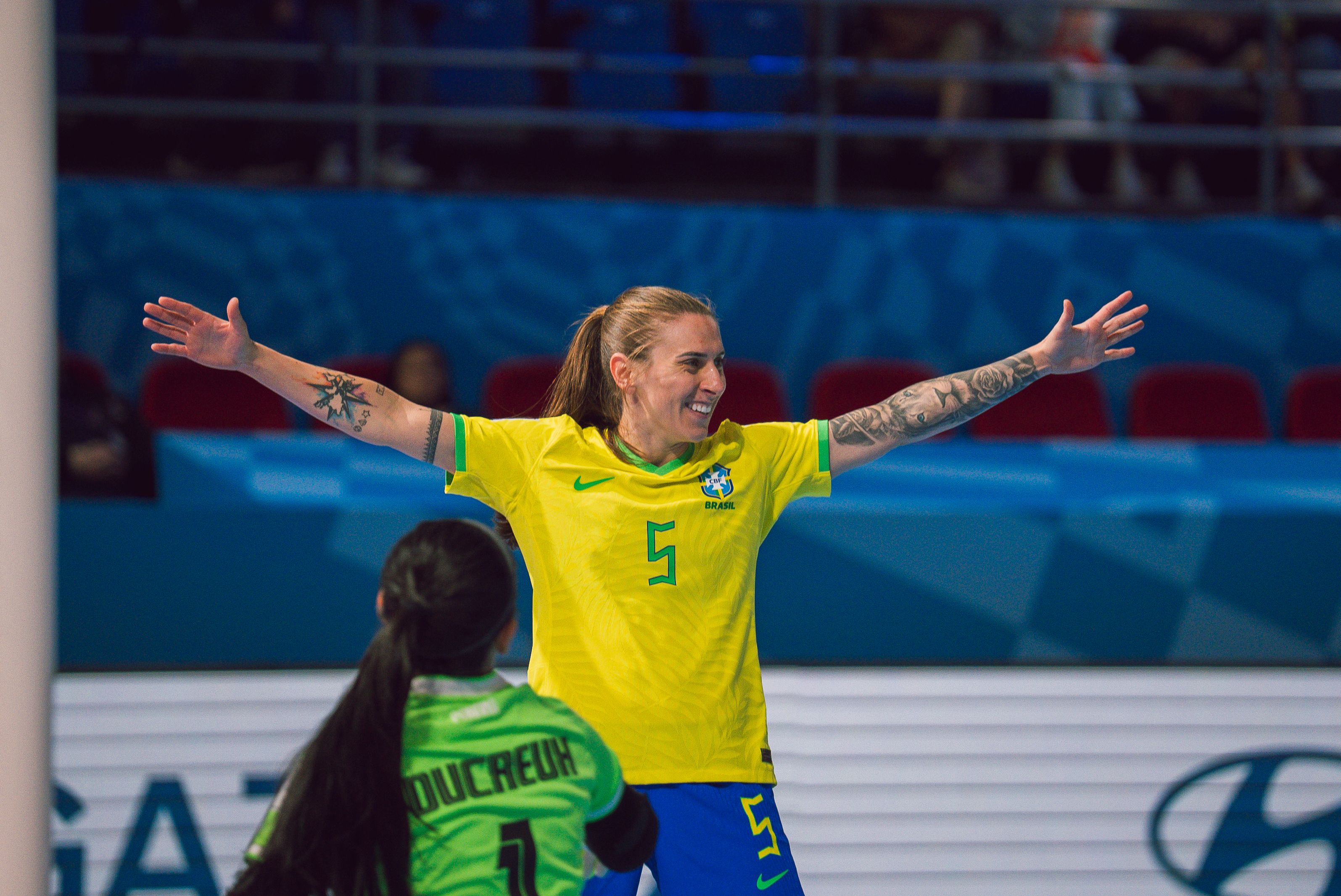 Fabio Souza / CBFA Seleção Brasileira Feminina goleou o Panamá por 9 a 0 neste sábado (29), na PhilSports Arena, em Manila, nas Filipinas, e confirmou o primeiro lugar do Grupo D da Copa do Mundo de Futsal. Agora, vai enfrentar o Japão, na terça-feira (2), pelas quartas de final da competição.