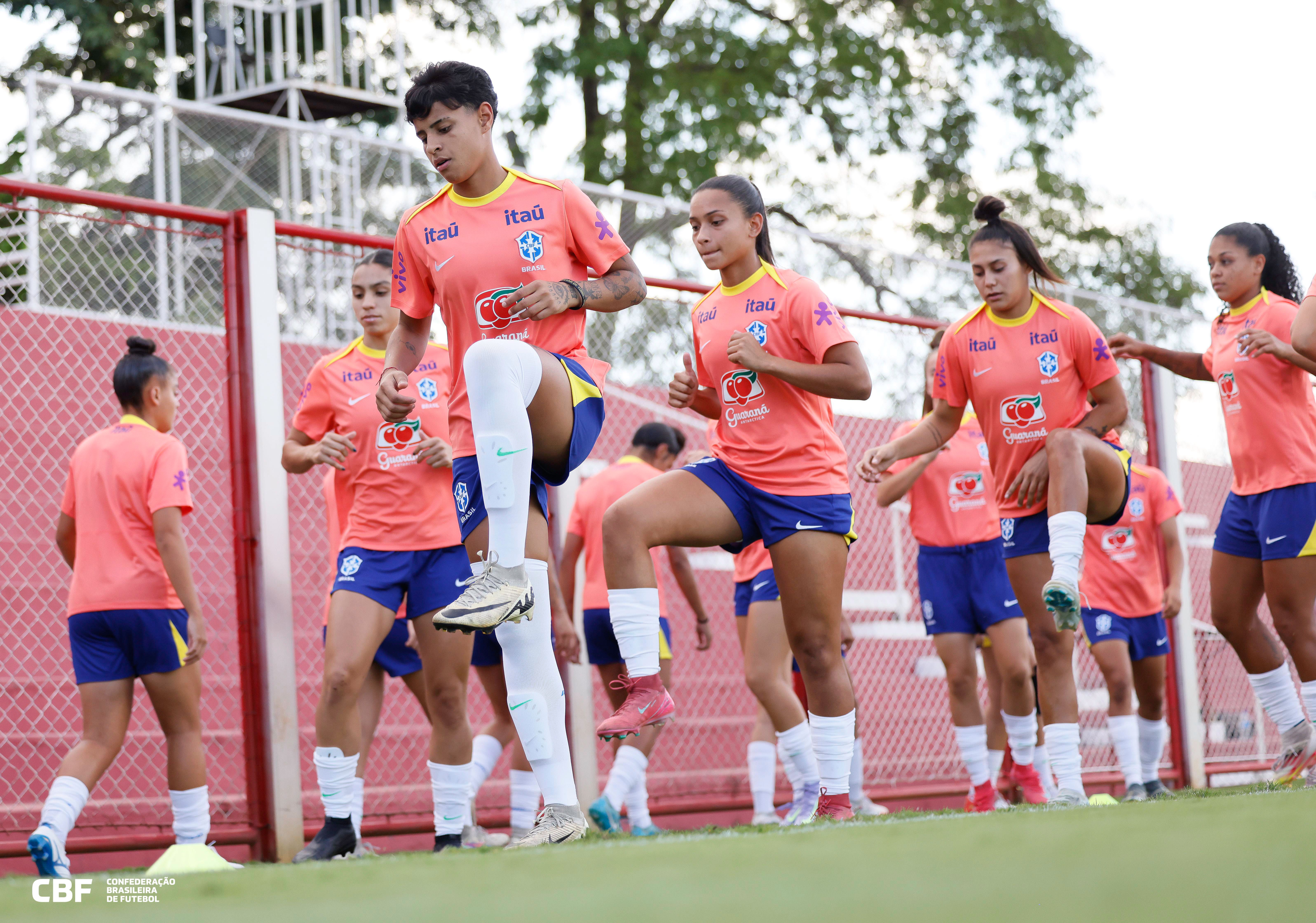 Rafael Rocha puxa fila de aquecimento da Seleção Feminina Sub-20 no Onésio Brasileiro Alvarenga, em GoiâniaCréditos: Rafael Ribeiro / CBF