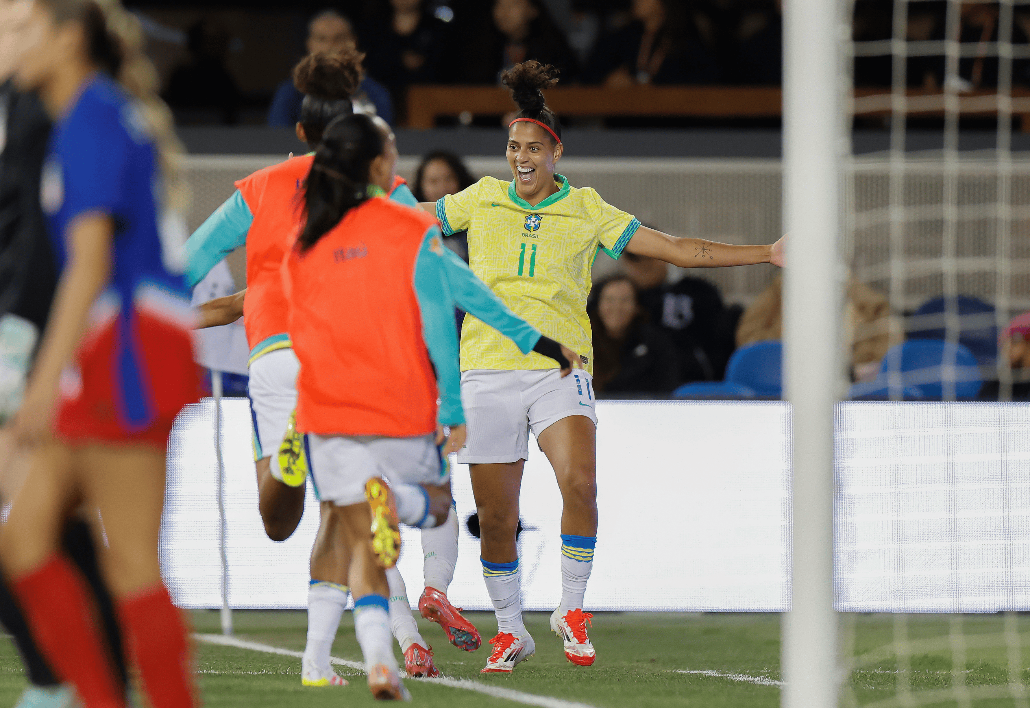 Amanda Gutierres marca o gol que garantiu a vitória do Brasil sobre os EUA no PayPal Park Stadium em San José (EUA) Créditos: RAFAEL RIBEIRO/CBF