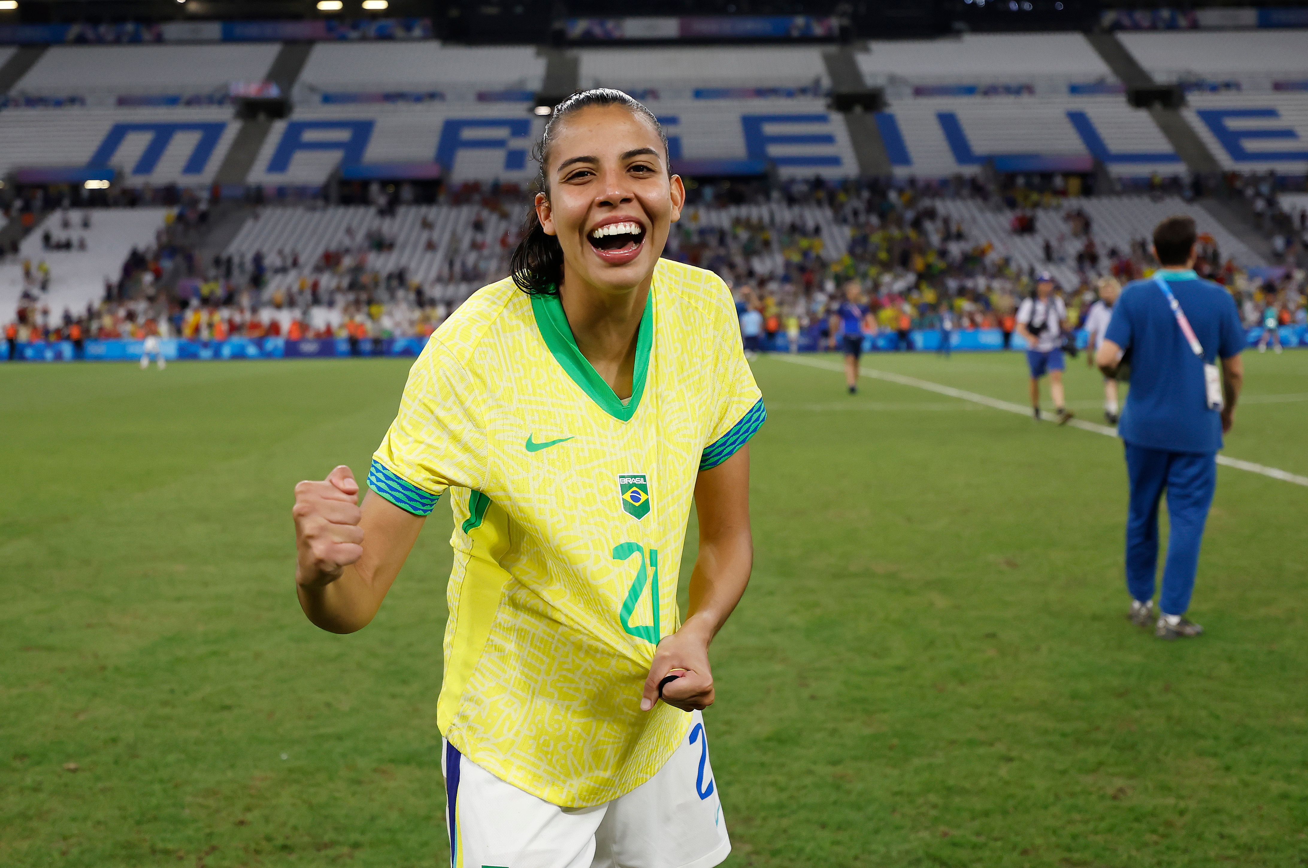 Lauren em comemoração da classificação da Seleção Brasileira para a final dos Jogos Olímpicos de Paris 2024Créditos: Harriet Lander - FIFA/FIFA via Getty Images