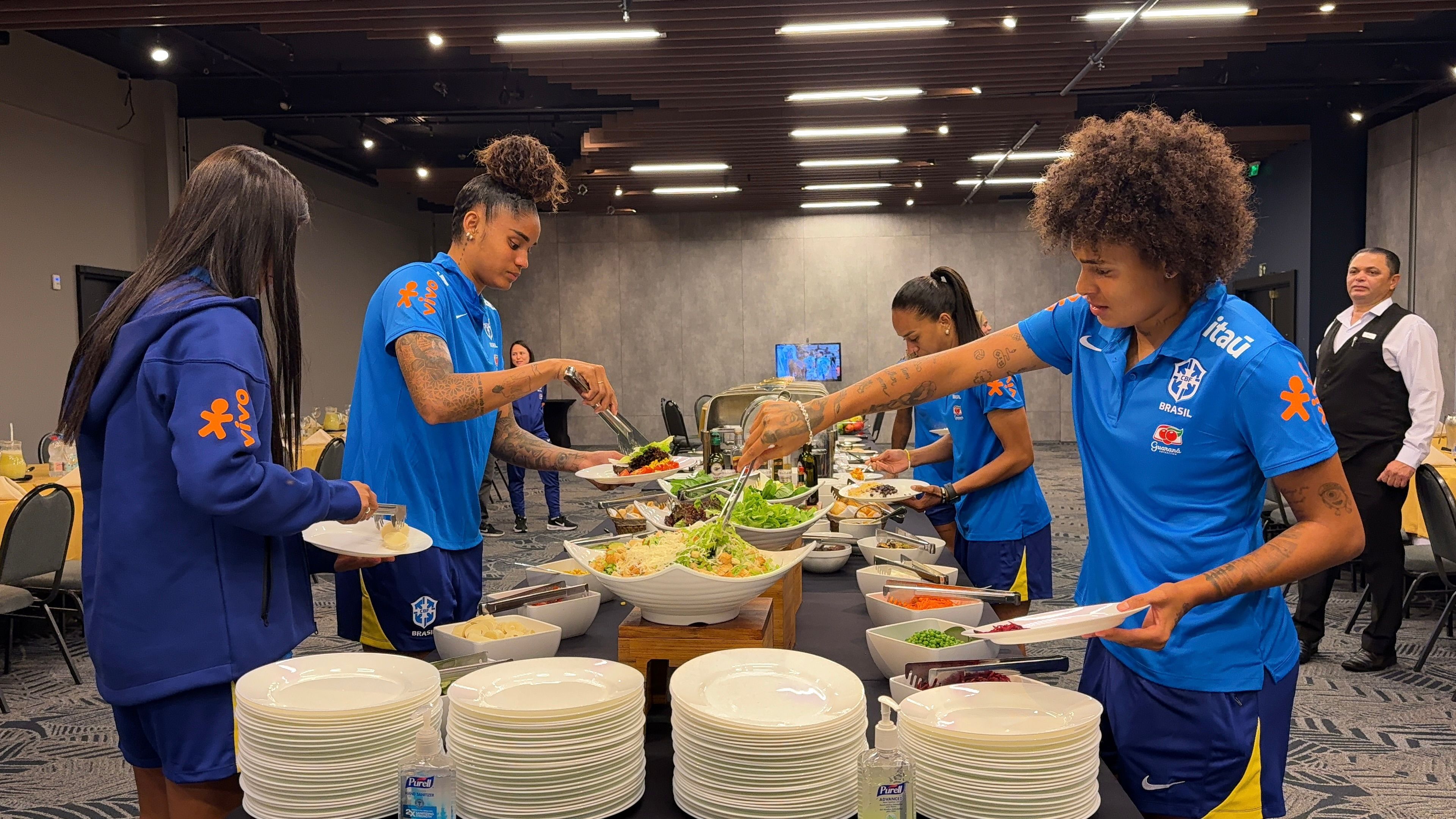 No período da tarde, 18 atletas se apresentaram a seleção: Gio, Luany, Yayá, Yasmim, Tarciane, Duda Sampaio, Mariza, Thaís Ferreira, Fátima Dutra, Fê Palermo, Adriana, Kaká, Bruna Calderan, Dudinha, Camila, Kerolin, Claúdia e Amanda Gutierrez. A noite chegaram ao hotel a zagueira Iza Haas e a atacante Johnson, convocada pela primeira vez para Seleção principal. O grupo ficará completo na manhã desta segunda-feira com as chegadas da goleira Lorena e das atacantes Jheniffer e Ludmila.