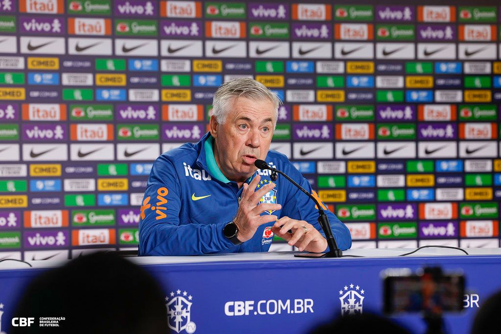 Carllo Ancelotti confirmou que a Seleção terá mudanças para o jogo contra a BolíviaCréditos: Rafael Ribeiro/CBF