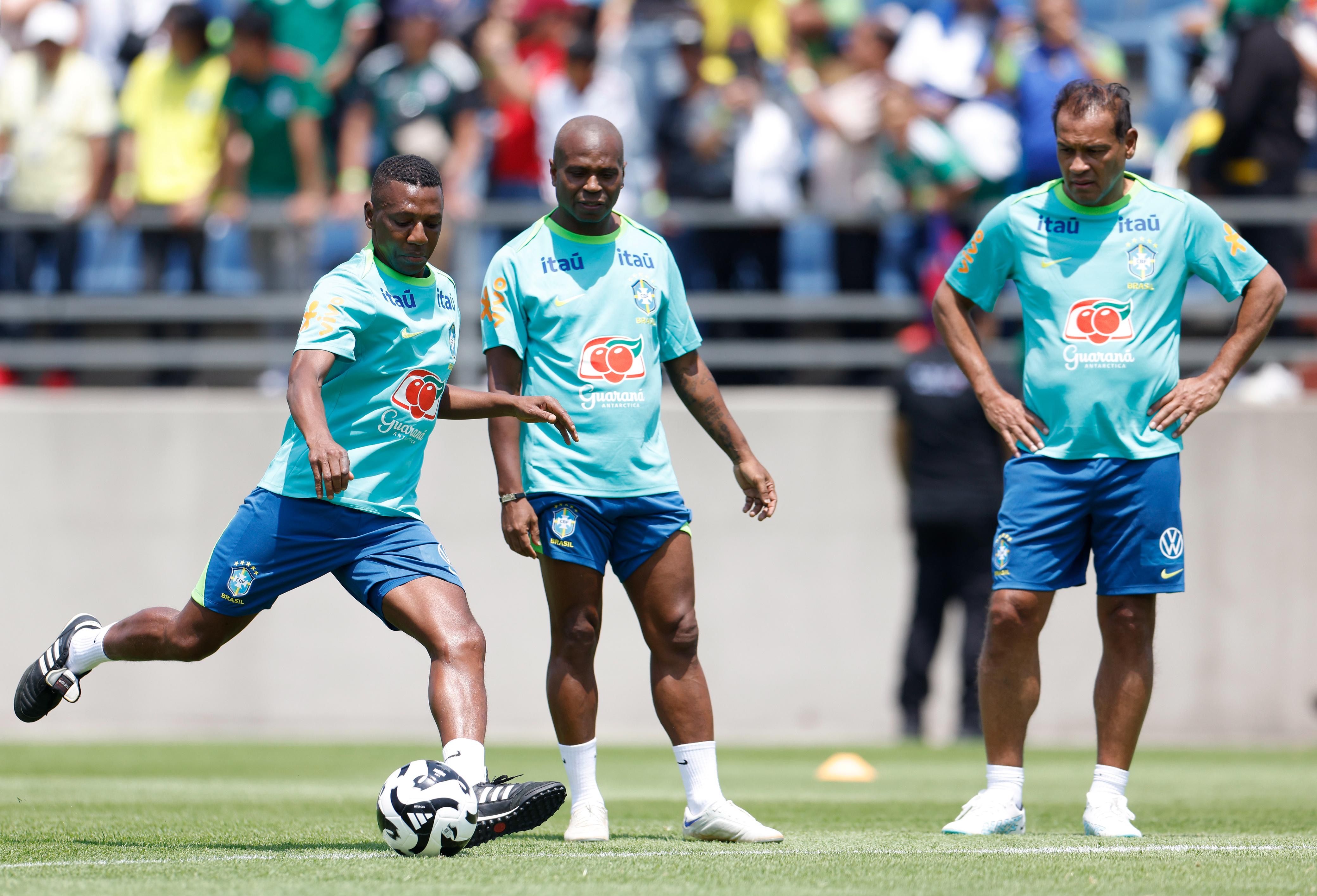 Amaral, Edilson e Muller durante treino da Seleção Brasileira de Lendas na Cidade do MéxicoCréditos: Rafael Ribeiro/CBF