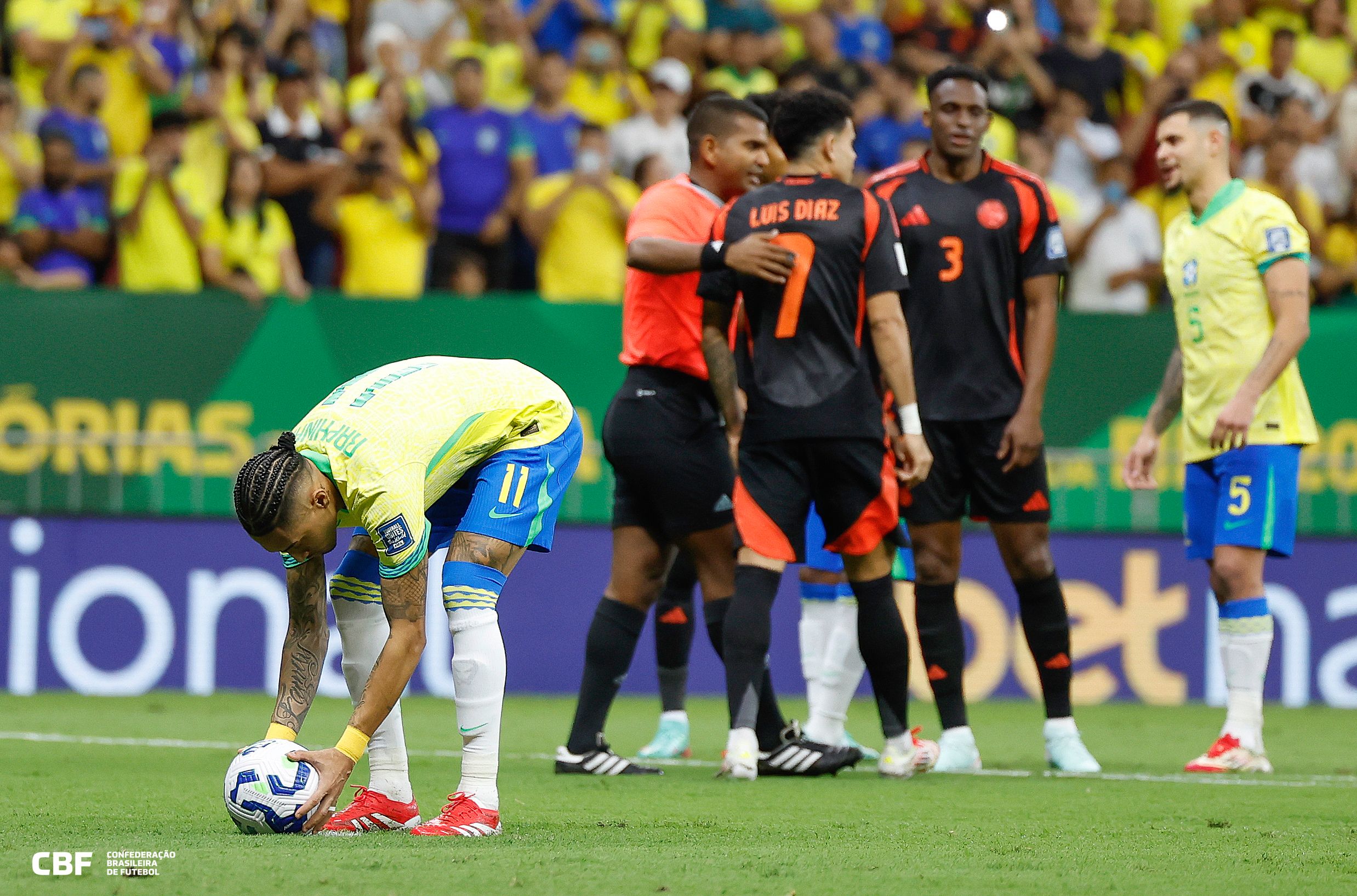Raphinha fez o primeiro gol da vitória brasileira contra a ColômbiaCréditos: Rafael Ribeiro/CBF