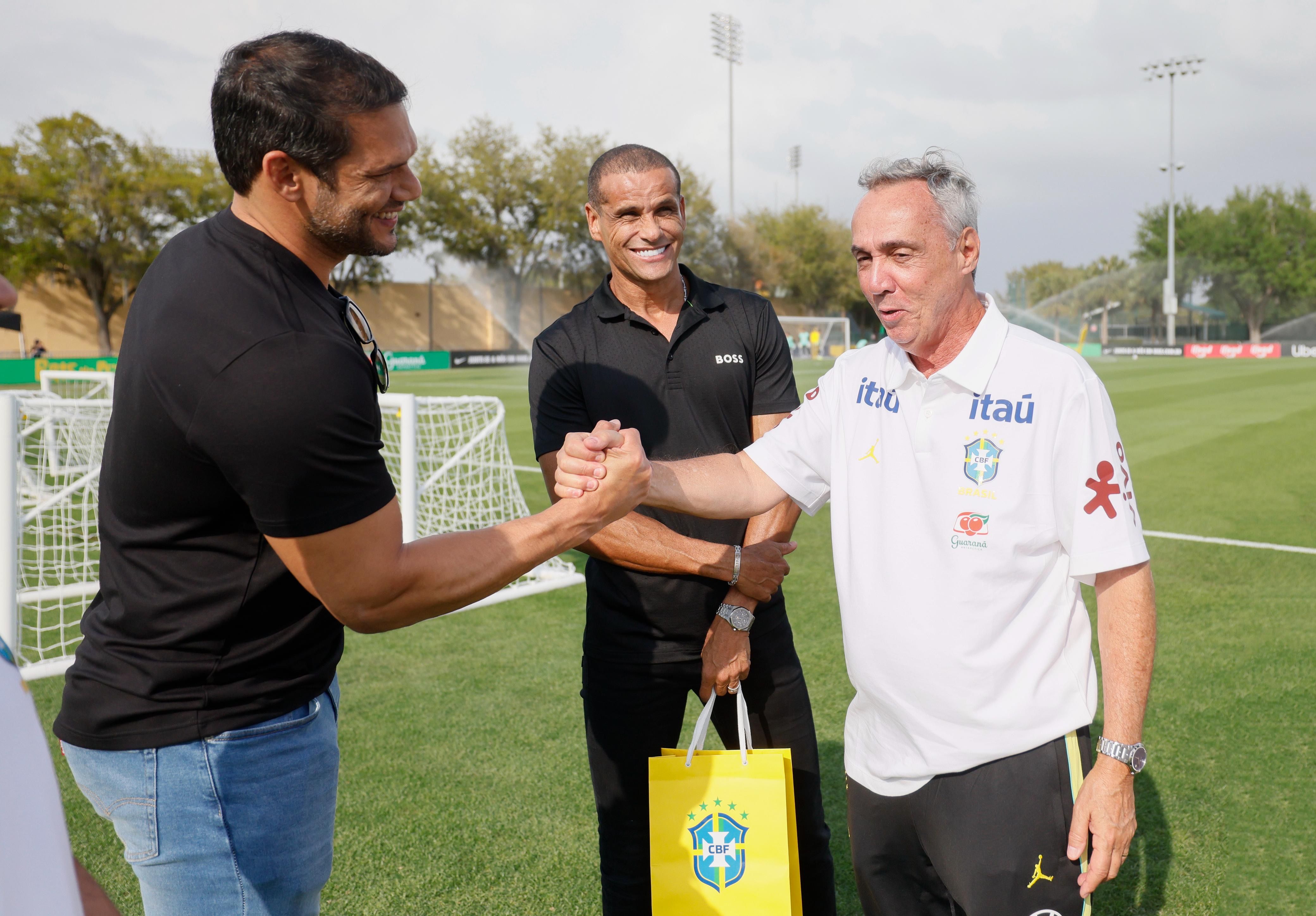 Samir Xaud, Rivaldo e Evandro Carvalho juntos em treino da Seleção em OrlandoCréditos: Rafael Ribeiro/CBF